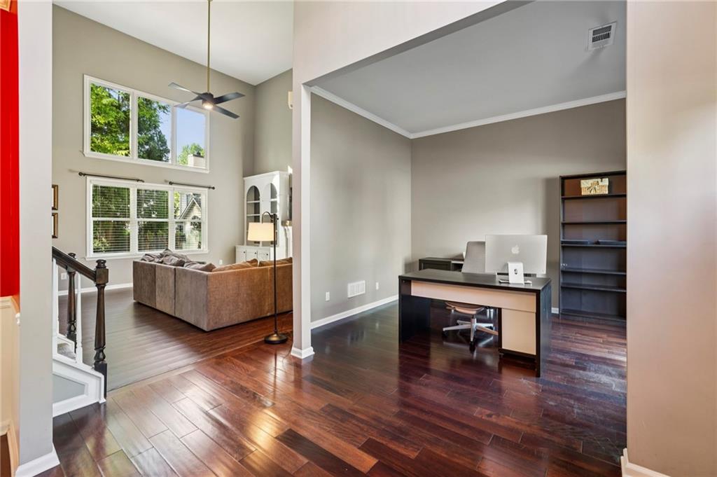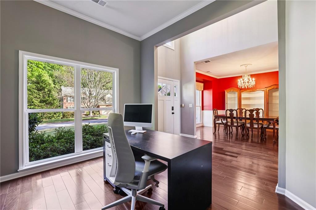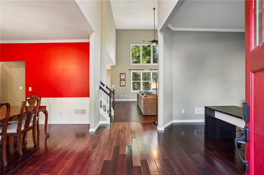 Other Interior Features: Crown Molding, Disappearing Attic Stairs, Entrance Foyer 2 Story, High Ceilings 9 ft Main, High Ceilings 9 ft Upper, Tray Ceiling(s)