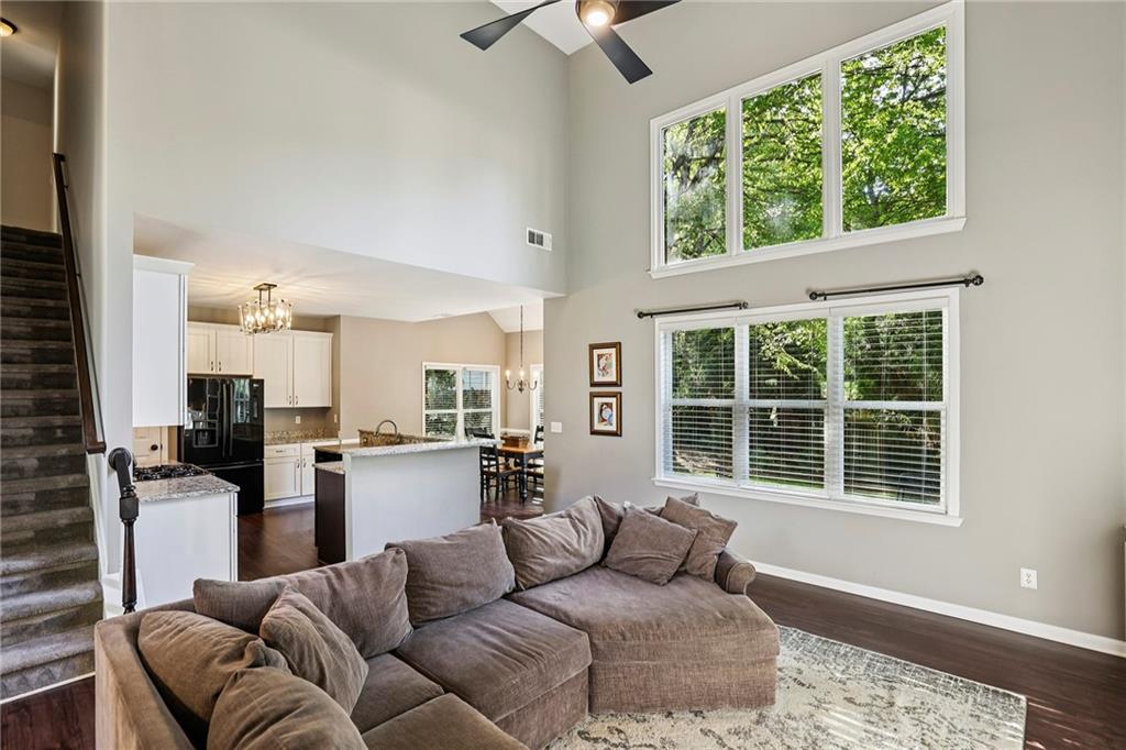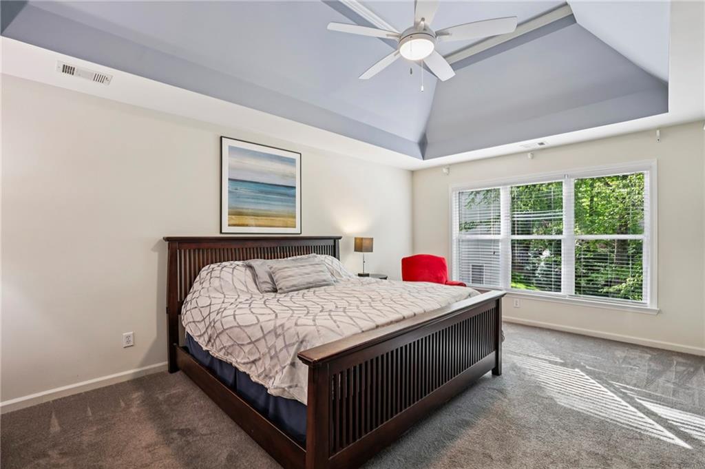Better than New with a BEDROOM and FULL BATH on MAIN! Brand NEW CARPET Upstairs! Within the last 5 years: NEW Water Heater, Two NEW HVAC's, Fresh Exterior and Interior PAINT, Primary BATH REMODEL, NEW LVP Flooring on the ENTIRE Main, ALL NEW Windows! Updated Kitchen, all Bathrooms Updated! New Lighting, New Garage Door! Private, Fenced Backyard on Quiet Culdesac street in Popular, Active Swim/Tennis Community! Top North Fulton Schools...Northview HS! Hardcoat Stucco and Hardiplank Siding! Clean, Incredibly Well Maintained and Move In Ready! The Shakerag neighborhood amenities including an Olympic-sized Pool, a Kiddie Pool, 6 Tennis Courts, a Full Court Basketball area, a Playground, a Picnic Pavillion, Grill Stations, and a Huge Playing Field where kids and families convene for neighborhood Movie Nights, Camp Outs and Parties! Right up the road from the amazing CAULEY CREEK PARK, which you must see to believe if you are not familiar with it...offering miles of track for running/walking, a pedestrian bridge crossing the Chattahoochee River, Pickleball Courts, Sand Volleyball Courts, Playgrounds, Playing Fields...it is amazing. Convenient to excellent dining and shopping, and literally right around the corner from the nearly built MEDLEY, a multi use development that will open October 2026, with amazing restaurants, rooftop bars, shopping.... built by the same developer who built Avalon in Alpharetta!